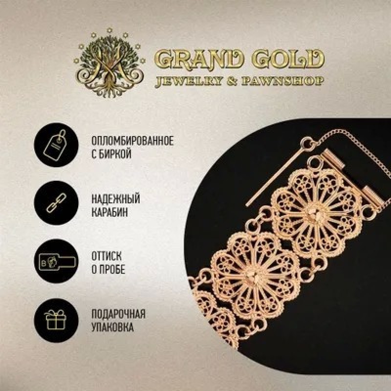 GRAND GOLD Браслет фантазийного плетения из красного золота полновес Золото 585 Размер 20,5 Ширина ₽13250.0 |