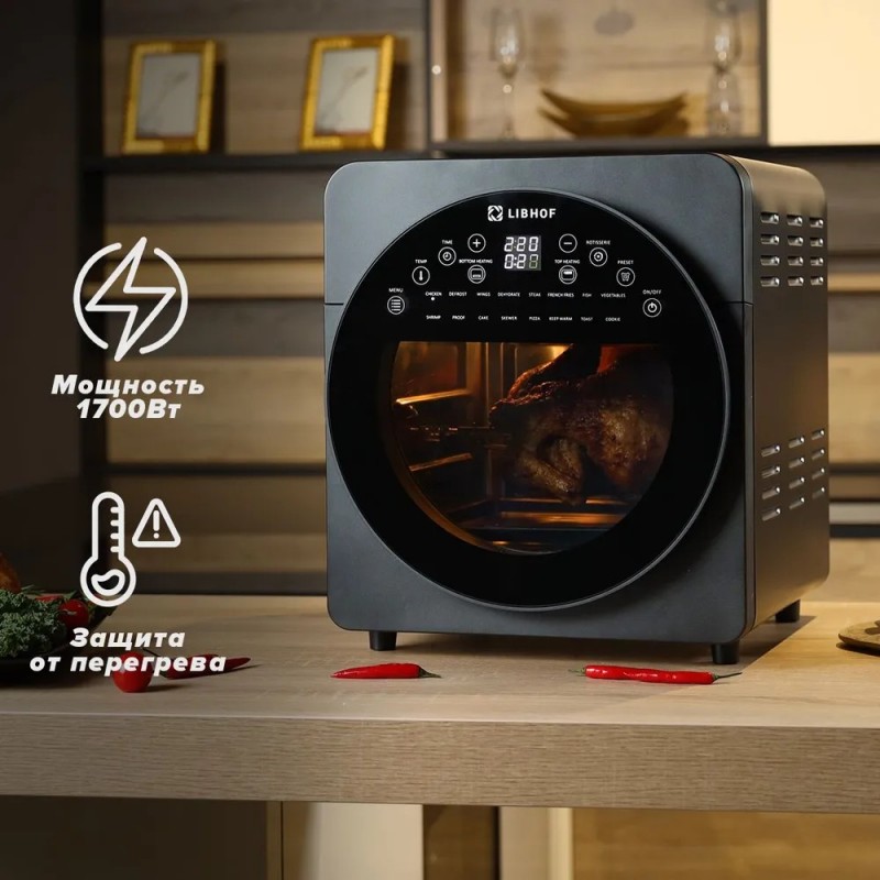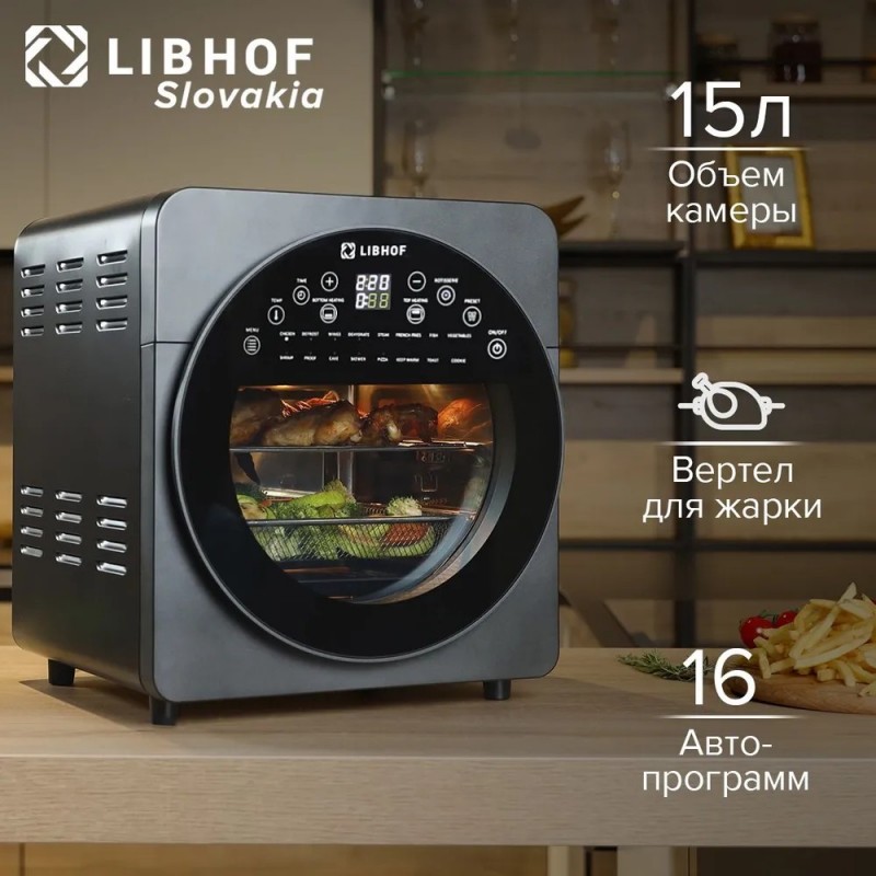 Аэрогриль Libhof AFN-317 объемом 15 л / 1700 Вт / 16 программ приготовления, таймер до 90 мин, защит